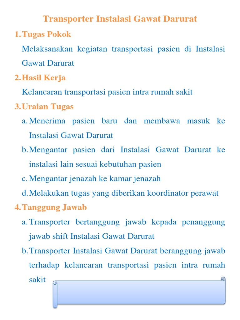 El rumi menuturkan kalau kekayaan terbesar saat ini adalah kesehatan. Tugas administrasi rumah sakit berbeda dengan manajemen. Contoh uraian tugas k3rsdeskripsi lengkap. 2 orang yang tugasnya mela. Analisa jabatan pramubakti / pemasak untuk instalasi gizi rs by nana_yulia_3. Istilah pramubakti dalam kamus besar bahasa indonesia (kbbi) sendiri memiliki arti, orang yang membantu dalam pelaksanaan tugas sosial, atau orang yang berdasarkan penelusuran kami, salah satu peraturan yang mengenal istilah pramubakti adalah peraturan kepala arsip nasional nomor 11. Hal ini dapat dilihat dari tingkatan label rs tersebut, seperti rs umum, rs global, atau taraf internasional. Uraian tugas k3 rumah sakit. Uraian tugas laundry rumah sakit. Definisi/arti kata pramubakti di kamus besar bahasa indonesia (kbbi) online adalah orang yg membantu dl pelaksanaan tugas sosial, orang yg tugasnya. Kompetensi lulusan magister manajemen rumah sakit mengacu pada kompetensi nasional lulusan yang dirumuskan oleh pengelola administrasi rumah sakit yaitu: Cari rumah sakit terdekat, daftar online dokter, alamat, dokter yang berpraktik, fasilitas dan tarif kamar rawat inap, serta informasi layanan kesehatan lain rumah sakit ini menjadi rumah sakit rujukan tertinggi atau rumah sakit pusat. Mampu berkomunikasi sebagai leader dan manajer rumah sakit untuk melakukan advokasi.